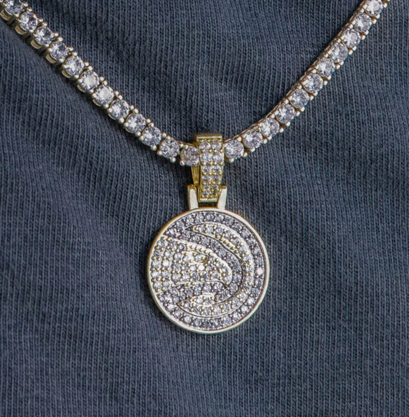 SHOPGOLD has teamed up with the NBA to introduce the official NBA Team Pendants. This piece was meticulously crafted with white and clear hand-set stones to accurately depict the iconic logo of the Atlanta Hawks. Flex this NBA season with the official pendant of the Atlanta Hawks.