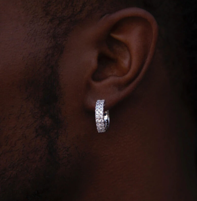 Our Double Row Hoop Earrings in White Gold are a great staple for everyone. These earrings feature 2 rows of shiny stones throughout the hoops, guarantying you’ll have the perfect amount of ice! Pair with one of our “Tennis Chains” for the perfect combo.