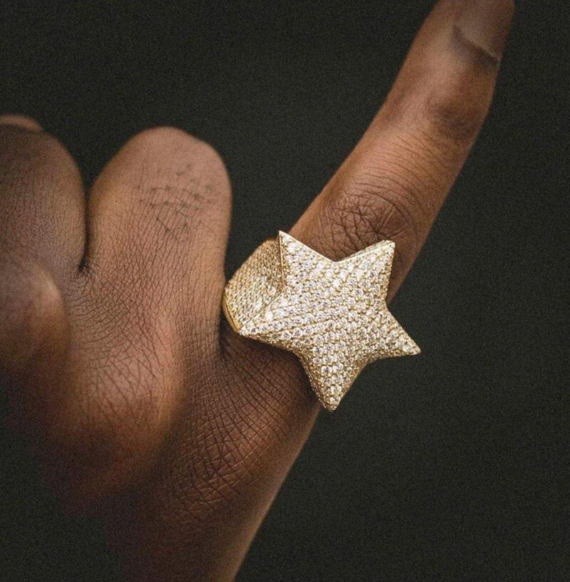 The Star Ring is flooded in hand-set round cut stones, giving it an incredible shine from any angle. This ring is made up of 100% precious metals made from 925 Silver covered in 3 microns of 18k gold.